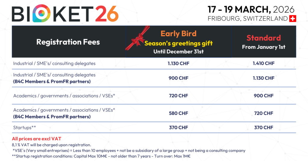 The 7th edition of BIOKET will take place at Forum Fribourg, a modern event and exhibition center located at Route du Lac 12, 1763 Granges-Paccot, Fribourg, Switzerland.